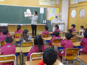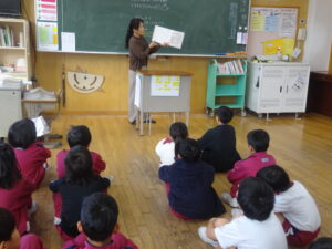 朝の読書タイムに「あさがおの会」の方々に読み聞かせをしていただきました。子供たちは、あさがおの会の方々のお話を静かに聞き入り、本の世界に浸っていました。
