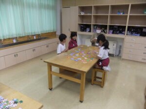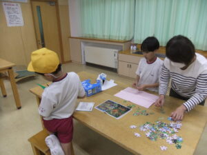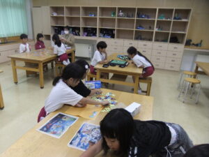 今日のつやつやサークルでは、カルタやパズル、折り紙、オセロ等、各グループごとに指導していただく先生方と一緒に楽しく活動していました。