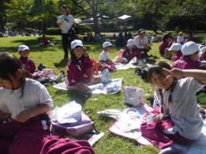 1・2年生が富山市ファミリーパークへ終日校外学習に行ってきました。晴天に恵まれ、グループで仲良くいろいろな動物を見て回ってきました。各グループには、塚原っ子応援隊の皆さんに安全指導・グループ指導をしていただきました。おかげで、安全で楽しい終日校外学習を実施することができました。子供たちの同じグループの人を思いやる優しい言動がたくさん見られました。