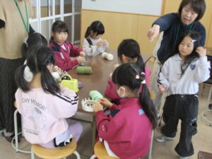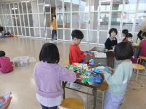 今回のつやつやサークルは、自由遊びでした。編み物や折り紙等をして楽しそうに活動していました。
