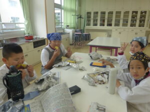 いつもお世話になっている先生方に感謝の気持ちを込めたメッセージカードと一緒に焼きいもをプレゼントしました。