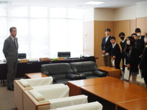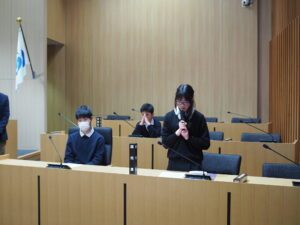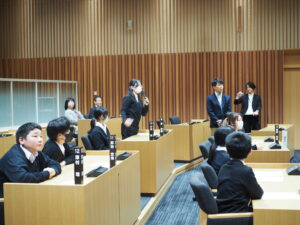 6年生が射水市議会議場で「子ども議会体験」を行い、市議会の仕組みを学びました。教育委員会が作ったシナリオに沿って、児童が市長役や議長役等を演じ、提案から議決までの流れを模擬体験しました。また、協議会室や委員会室を見学させていただいたり、地元出身の金副議長さんから、直接、お話を聞かせていただいたりしました。
