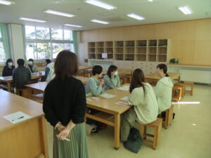 子供たち同士で交流を深めている間に、来年度入学する園児の保護者の方々で、市の子育てアドバイザーの方のご助言もいただきながら、日頃の子育てについて情報交換をしたり悩みを共有したりしました。