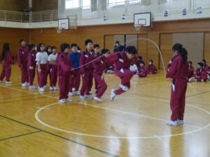 体育の時間やなわとびチャレンジタイムで練習してきた成果を発表するなわとび大会が行われました。