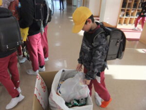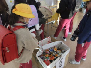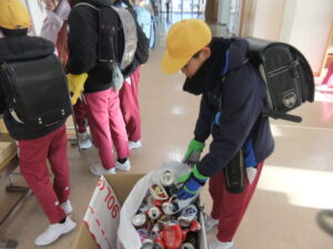 2月18日(水)~20日(金)の期間、アルミ缶回収をしています。子供たちがたくさんのアルミ缶を持ってきてくれました。