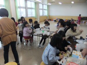 今年度、最後のつやつやサークルの時間でした。逢源ルームで読み聞かせをしていただいたり、参加している1~2年生で自由遊びをしたりしていました。