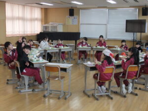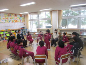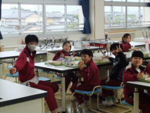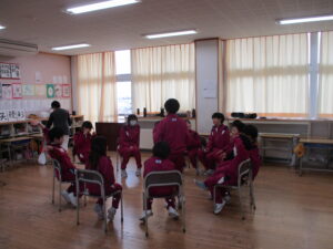 給食の時間にフレンドリー班(縦割り班)で交流会食を行いました。5年生が事前に会食中の座席や、話す内容を考えて行いました。6年生と一緒に給食を食べるのは今日が最後だったので、どの教室も楽しそうに食べている様子が見られました。また、会食後は、5年生を中心に交流タイムを行いました。椅子取りゲームや思い出バスケット、絵しりとり等、どの教室でも楽しく活動していました。いよいよ6年生は卒業までの残り7日となりました。 残り少ない学校生活で楽しい思い出をさらに作って、中学校に巣立っていってもらいたいです。