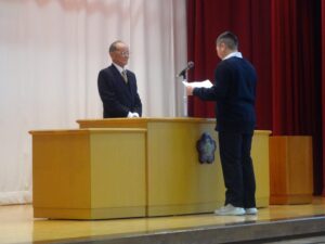 塚原小学校同窓会入会式が行われました。卒業生代表が誓いの言葉を述べるとともに、記念品を受け取りました。同窓会長様から歓迎のお言葉もいただきました。