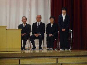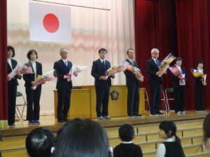 さらに、この4月に退職される先生や異動される先生とのお別れの式の離任式と本校の校長を終える式の退任式も行いました。子供たちは、これまでお世話になった先生方に感謝の気持ちを態度で示そうときちんとした態度で、お話しさせる先生方の目を見て、真剣に話を聞いていました。