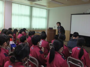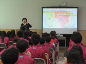 毎日、使うようになって、私たちの生活も大変、便利になった一方、中にはゲームをやめられない、携帯が側にないと落ち着かない等、小学生でも依存症のようになり、精神的にも不安定になる子供も見受けられるようです。講演では、ゲームや携帯の依存症になるとどうしてよくないかを科学的に専門的な知見も踏まえてお話していただきました。子供たちにとっても身近で関心の高い内容でもあり、真剣に話を聞いて、これからの生活に生かしていきたいと思っていたようです。。