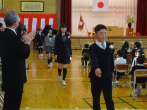 卒業生たちは、塚原小学校の卒業生としての誇りを胸に、これからも自らを高めていこうと、誓いを新たにしました。記念として校歌の入った文鎮が卒業生に贈られました。